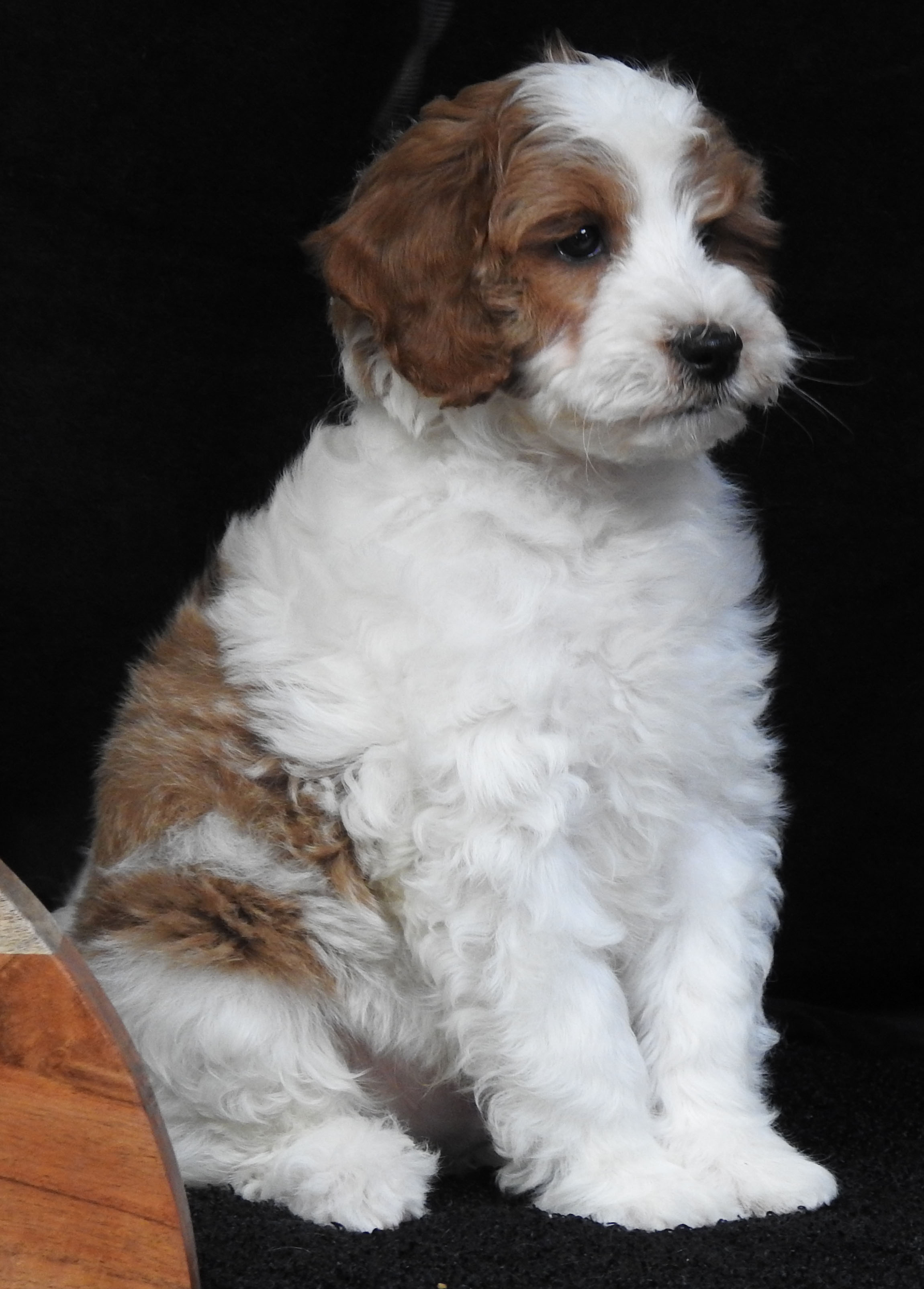 Parti - a white dog with colors that are distributed in patches on the body.